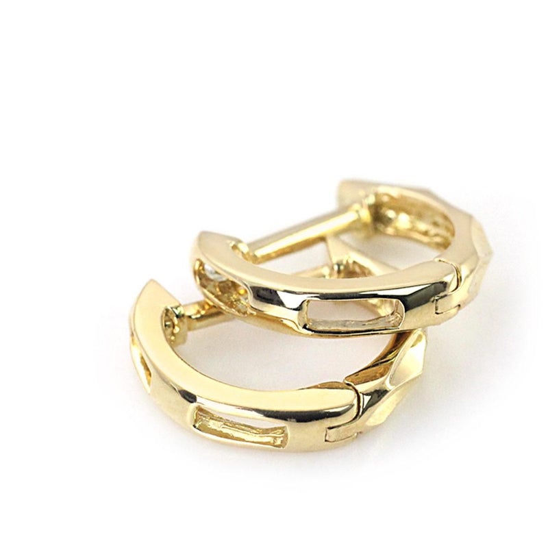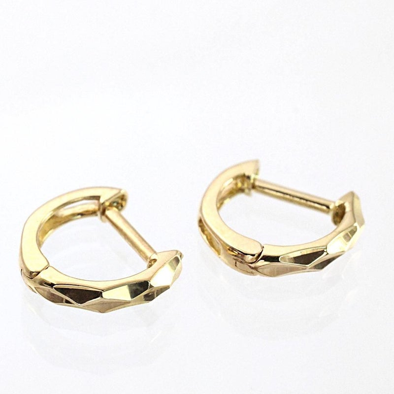 輪っかの表面に施されたダイヤ型のカットが、定番のフープピアスとはひと味違ったお洒落を演出します。