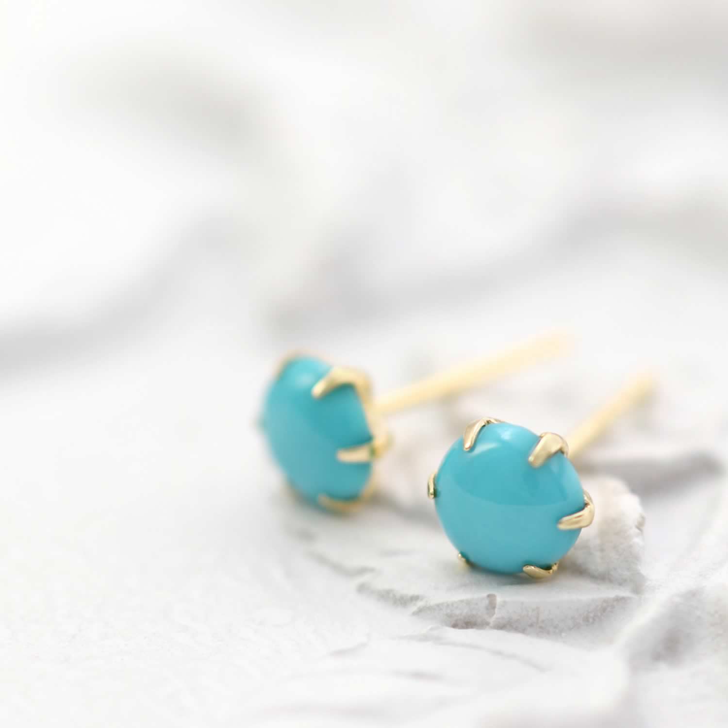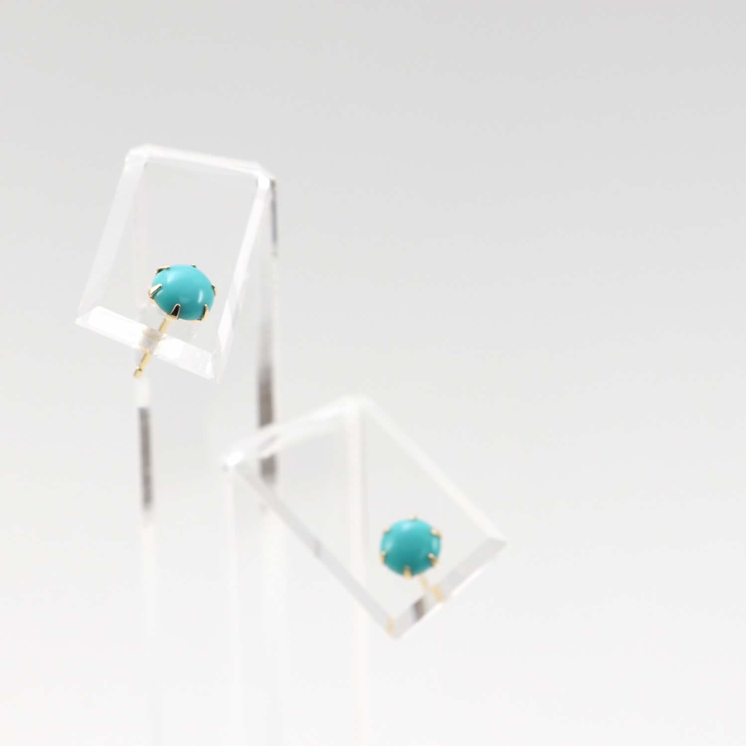 ラウンド カボッションカットのターコイズ(トルコ石)を合わせたピアスです。