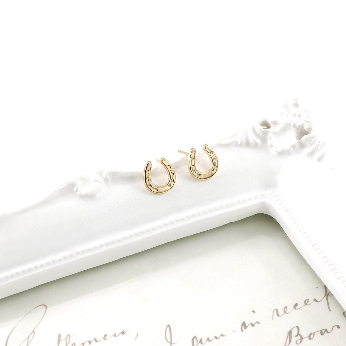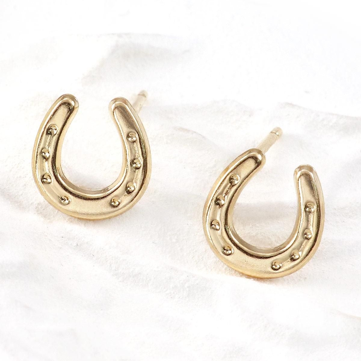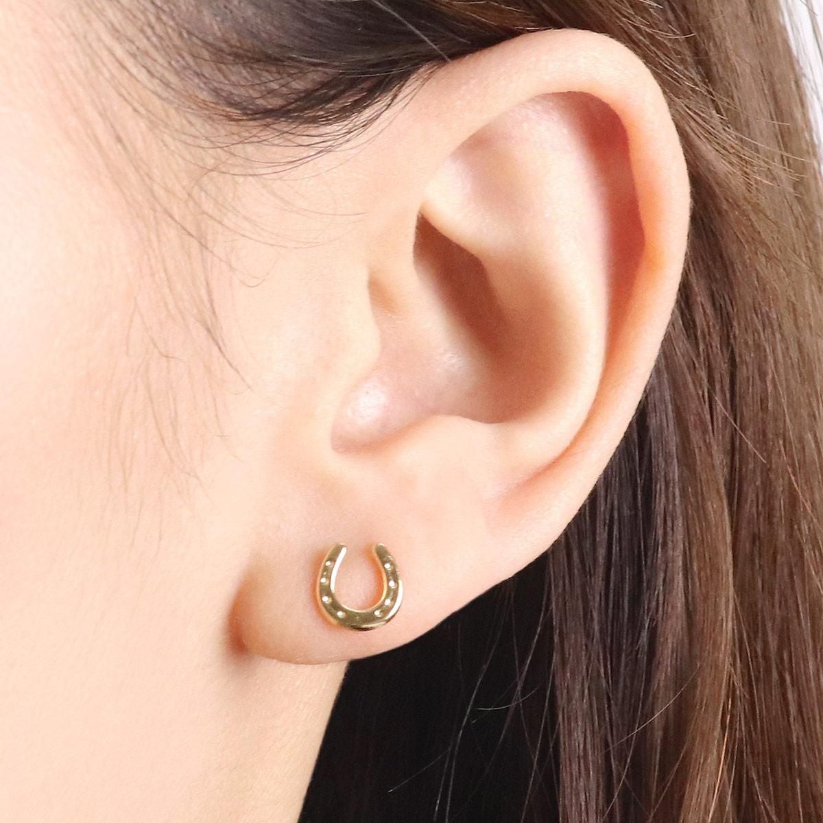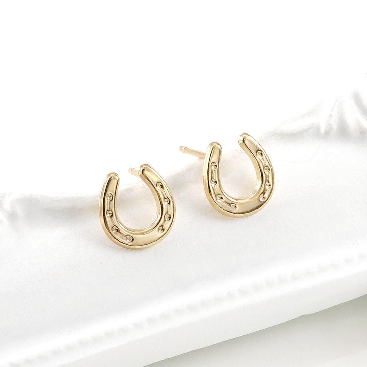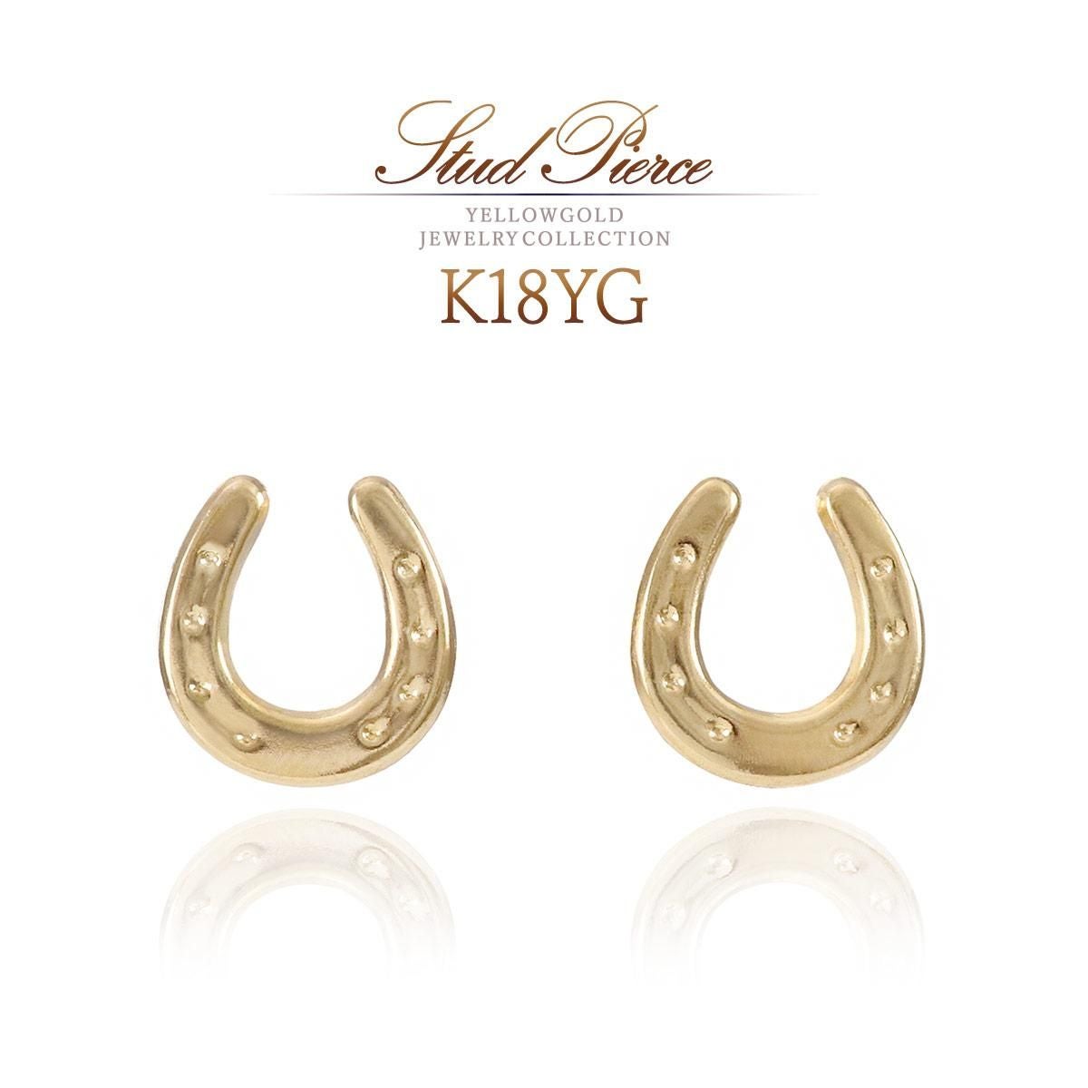 18金イエローゴールドの地金に馬蹄(ホースシュー)モチーフを合わせたピアスです。