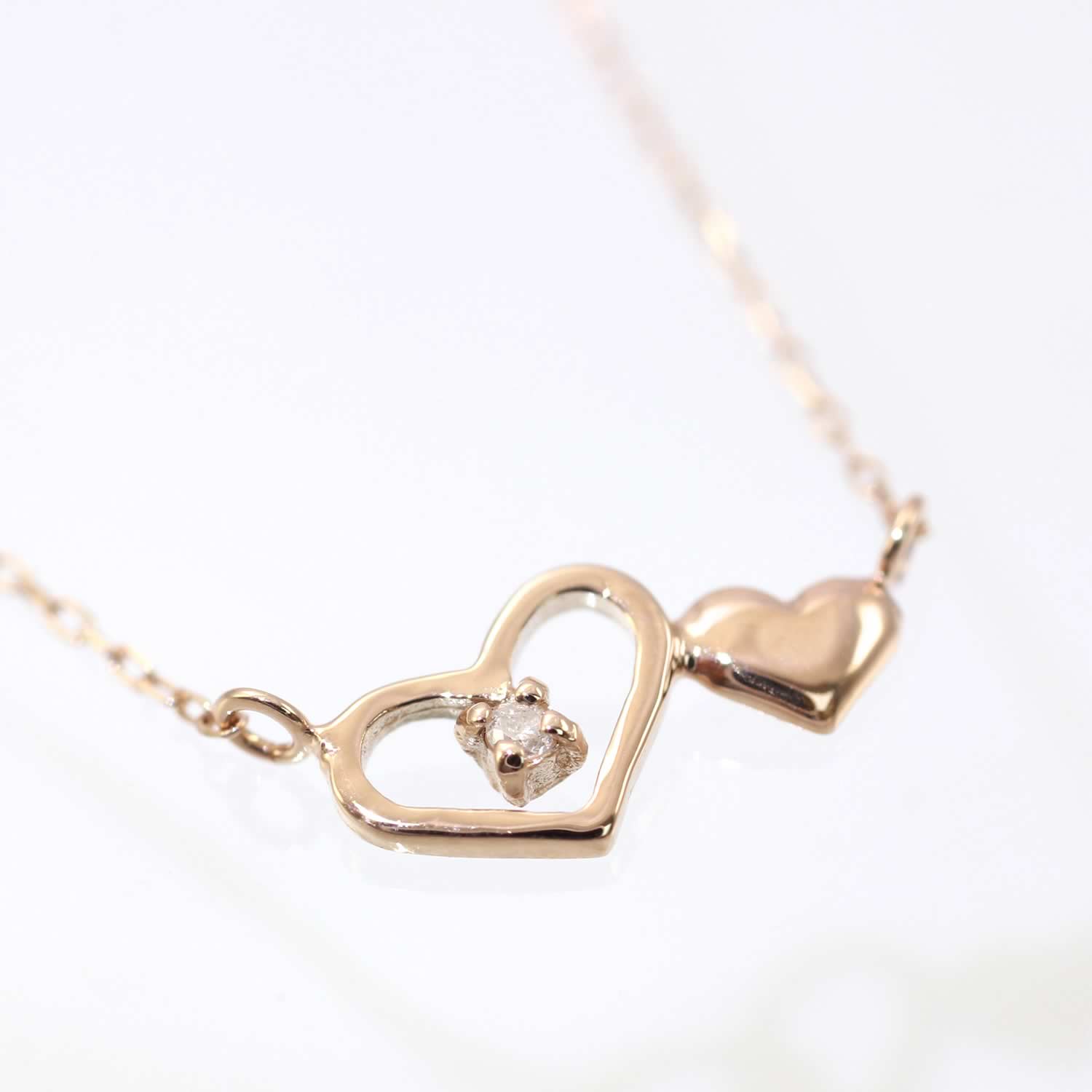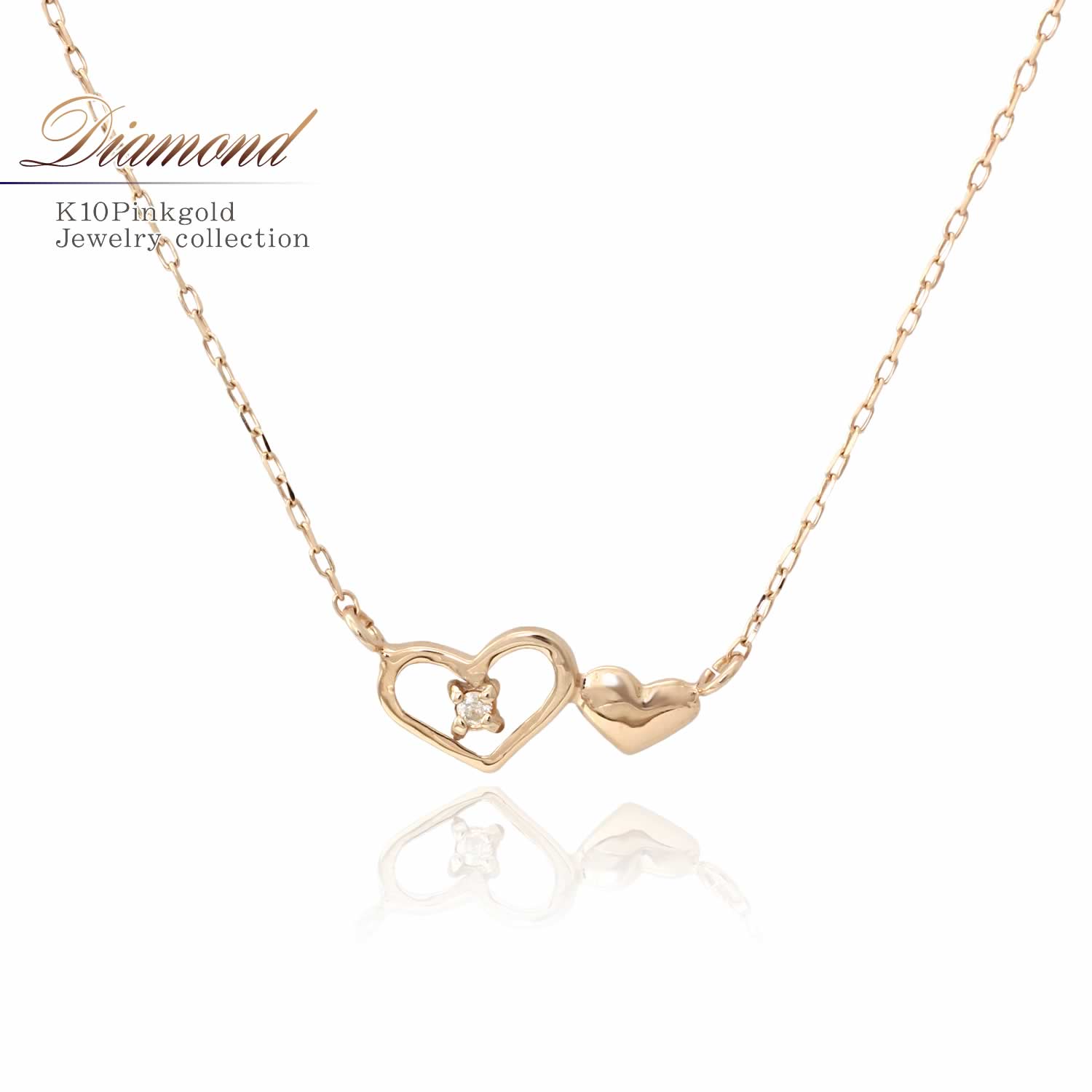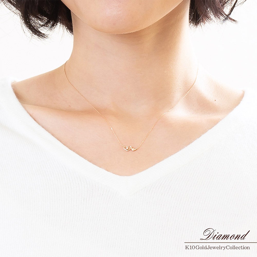 K10PG ダイヤモンド ハート ネックレス