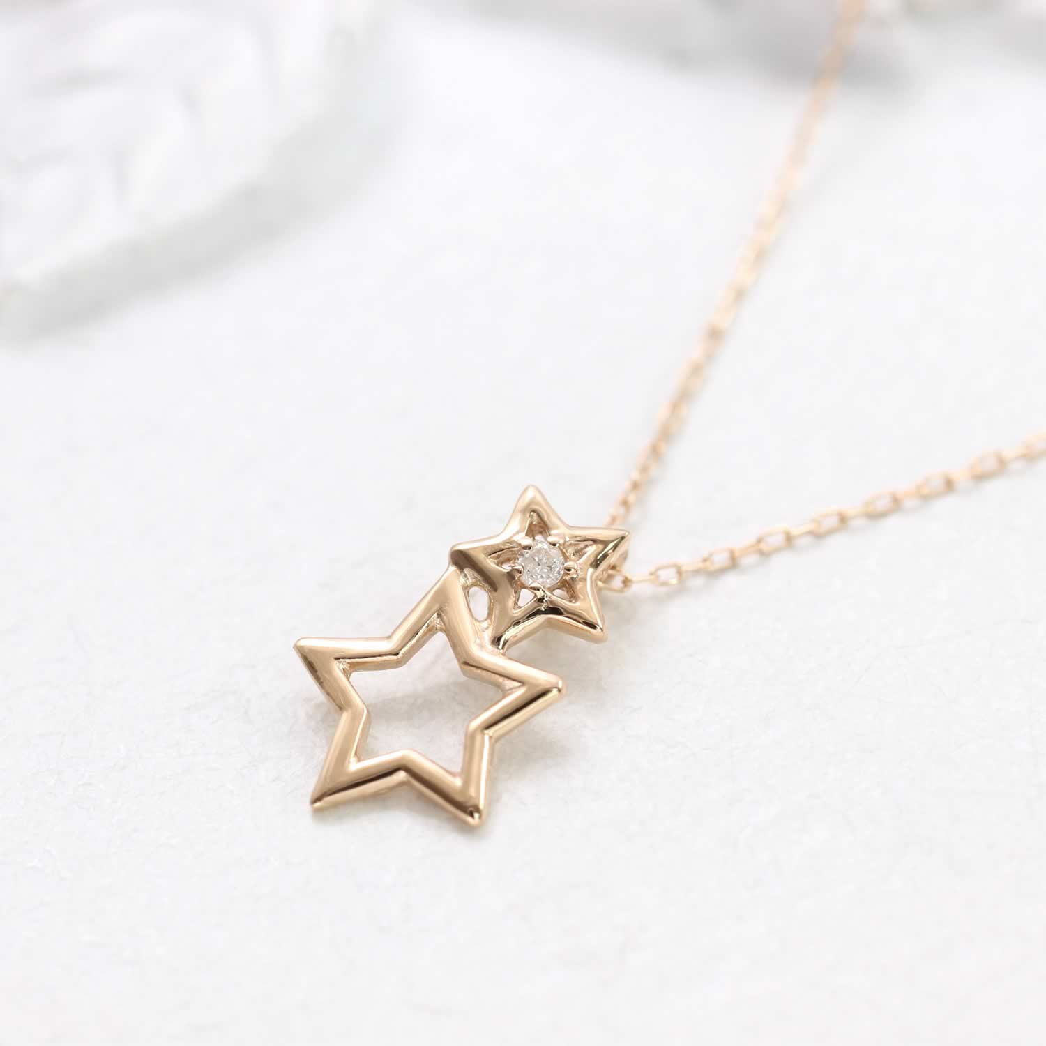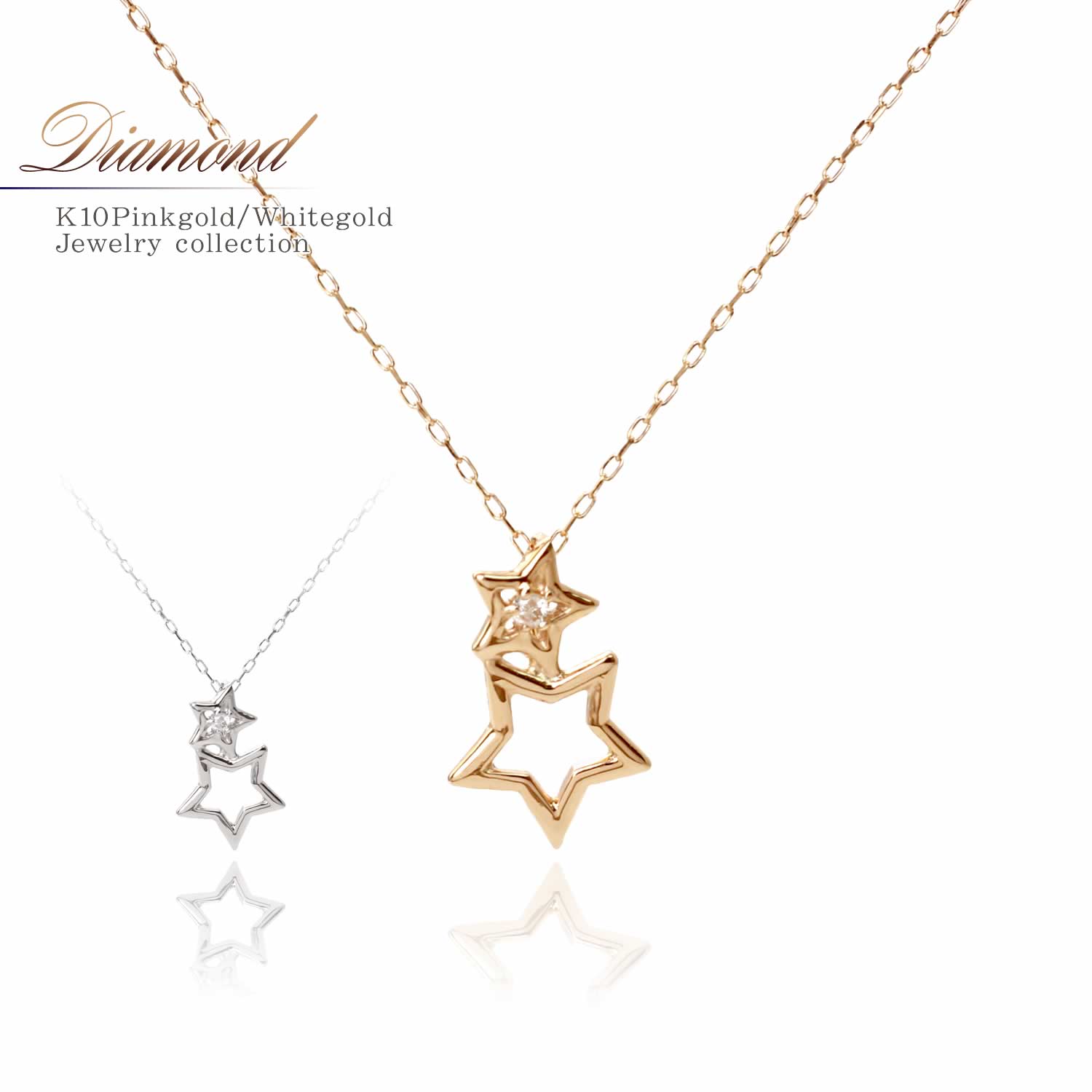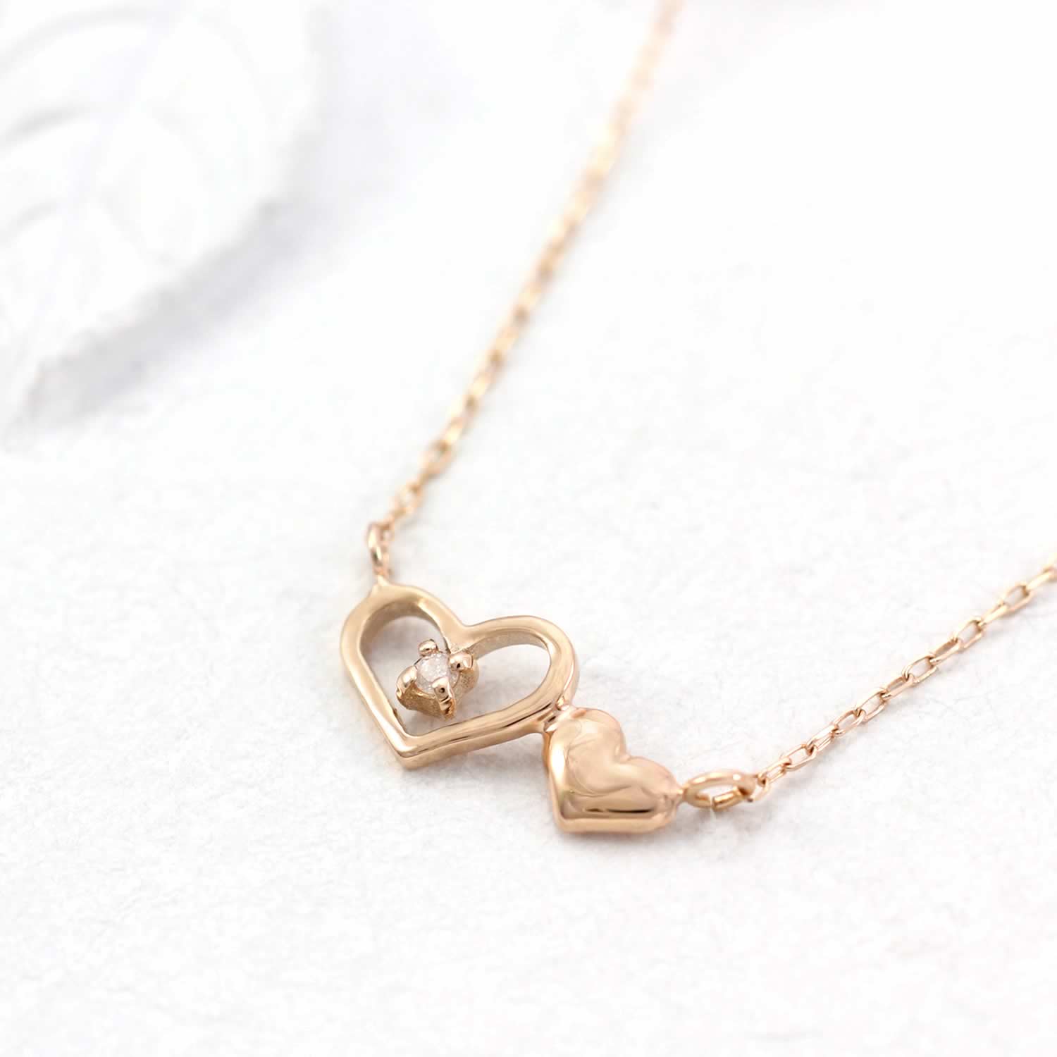 K10PG ダイヤモンド ハート ネックレス