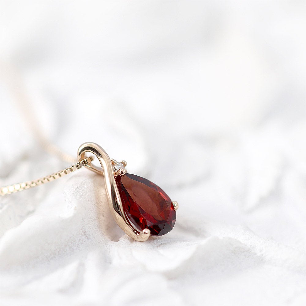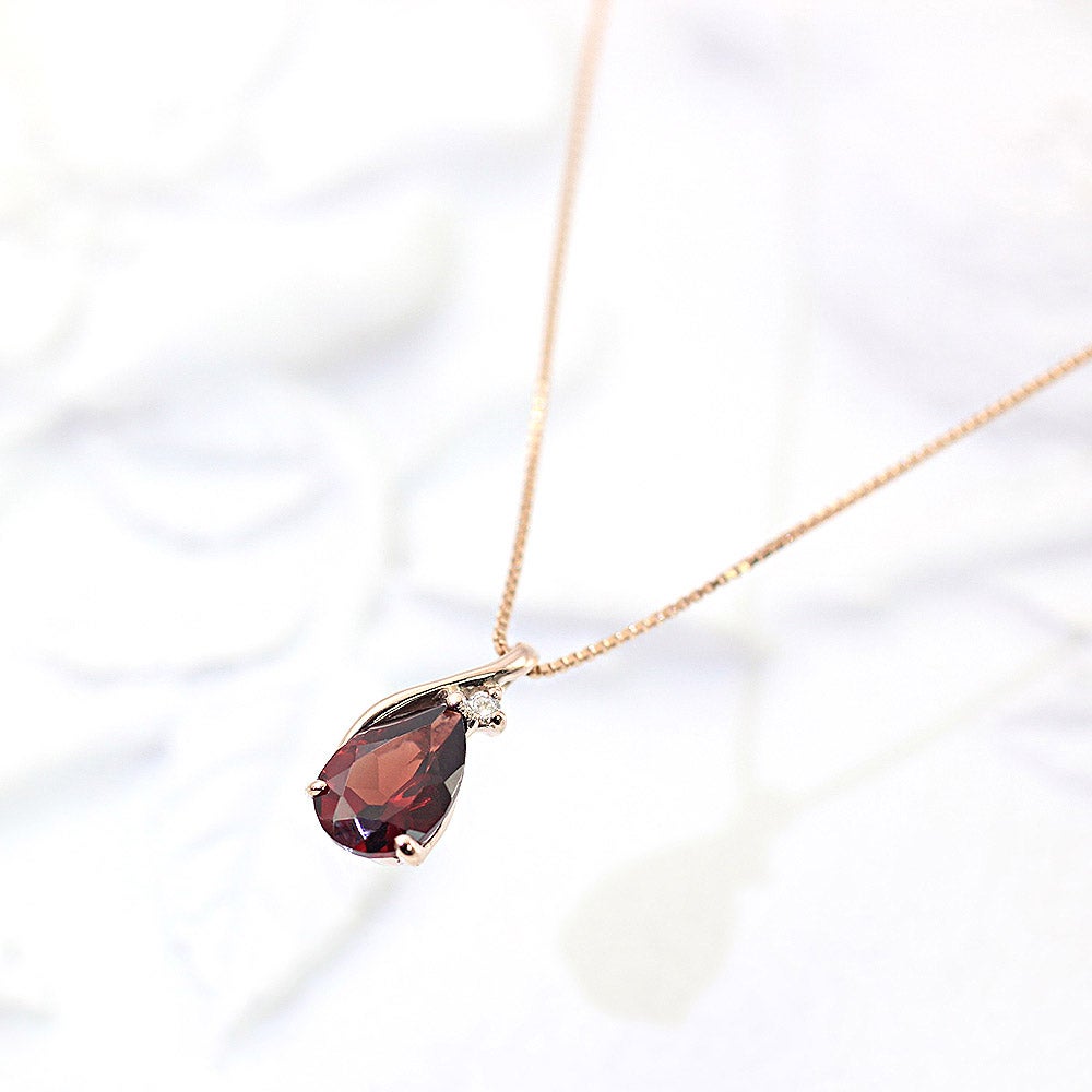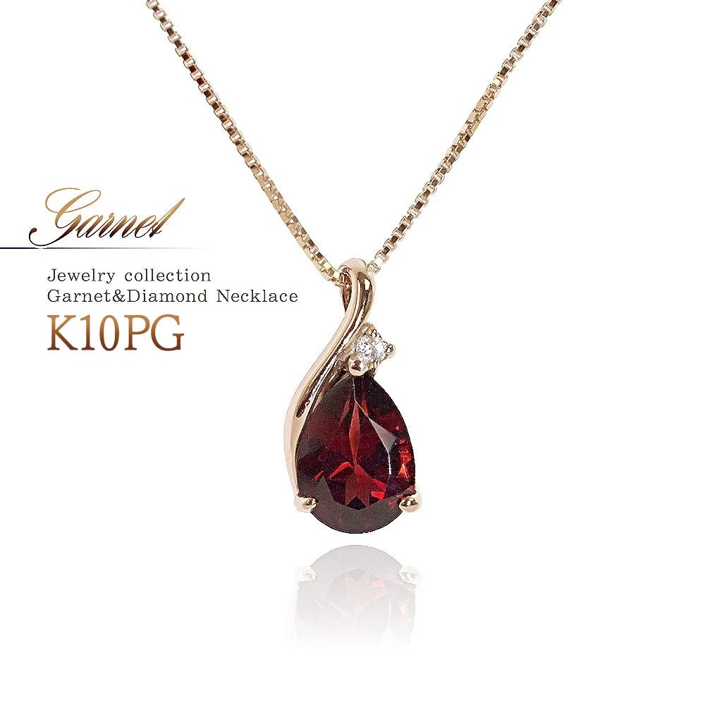 K10PG ガーネット&ダイヤモンド ネックレス
